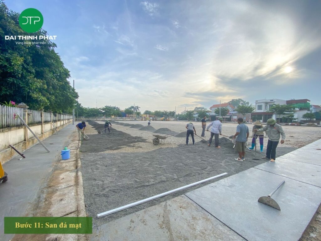 - Bước 2 – 12: Thi công hạng mục nền hạ sân bóng