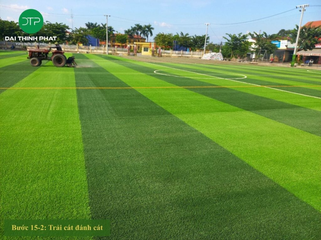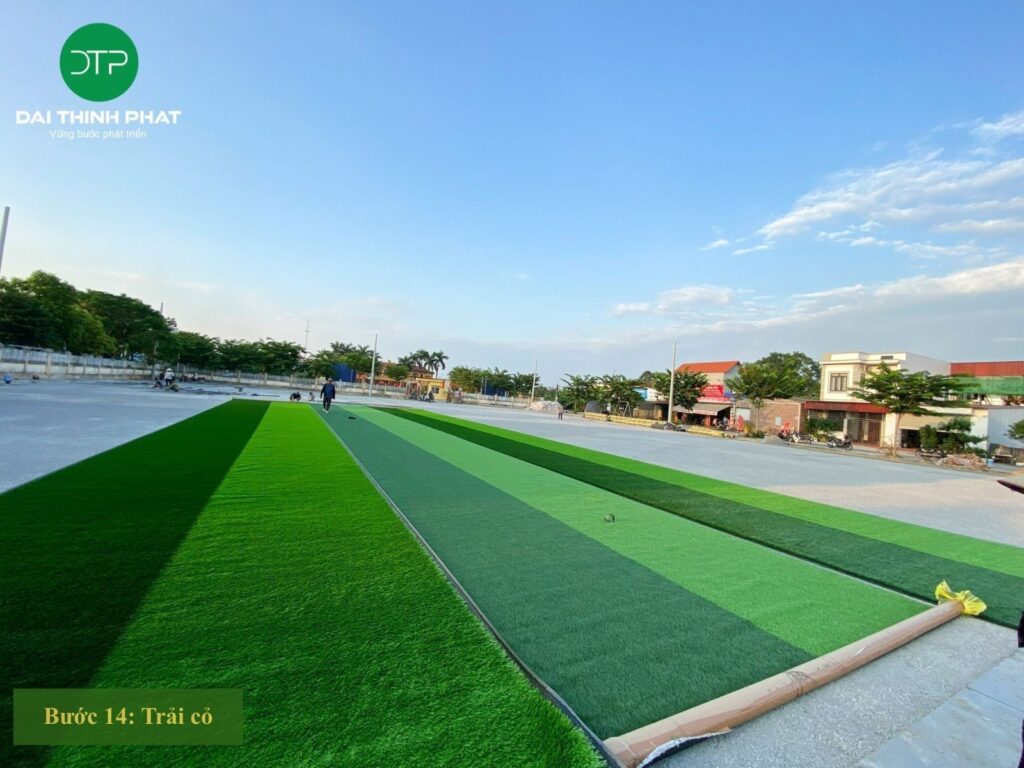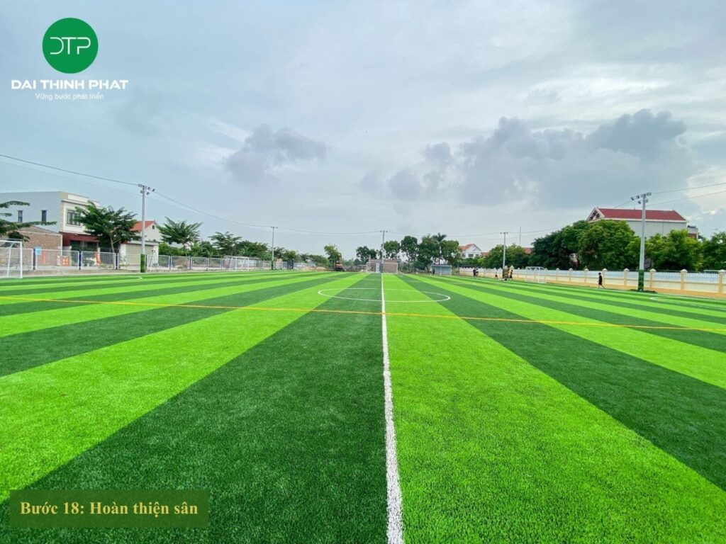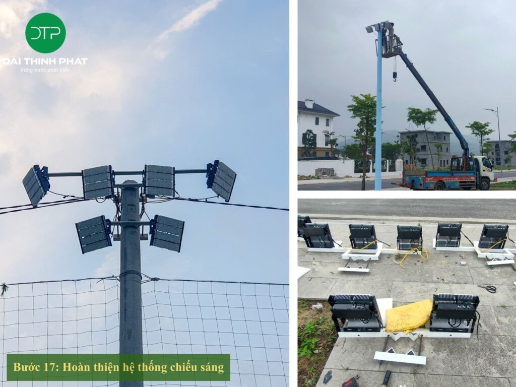 - Bước 14 – 18: Thi công hoàn thiện mặt cỏ, điện chiếu sáng, lưới chắn bóng